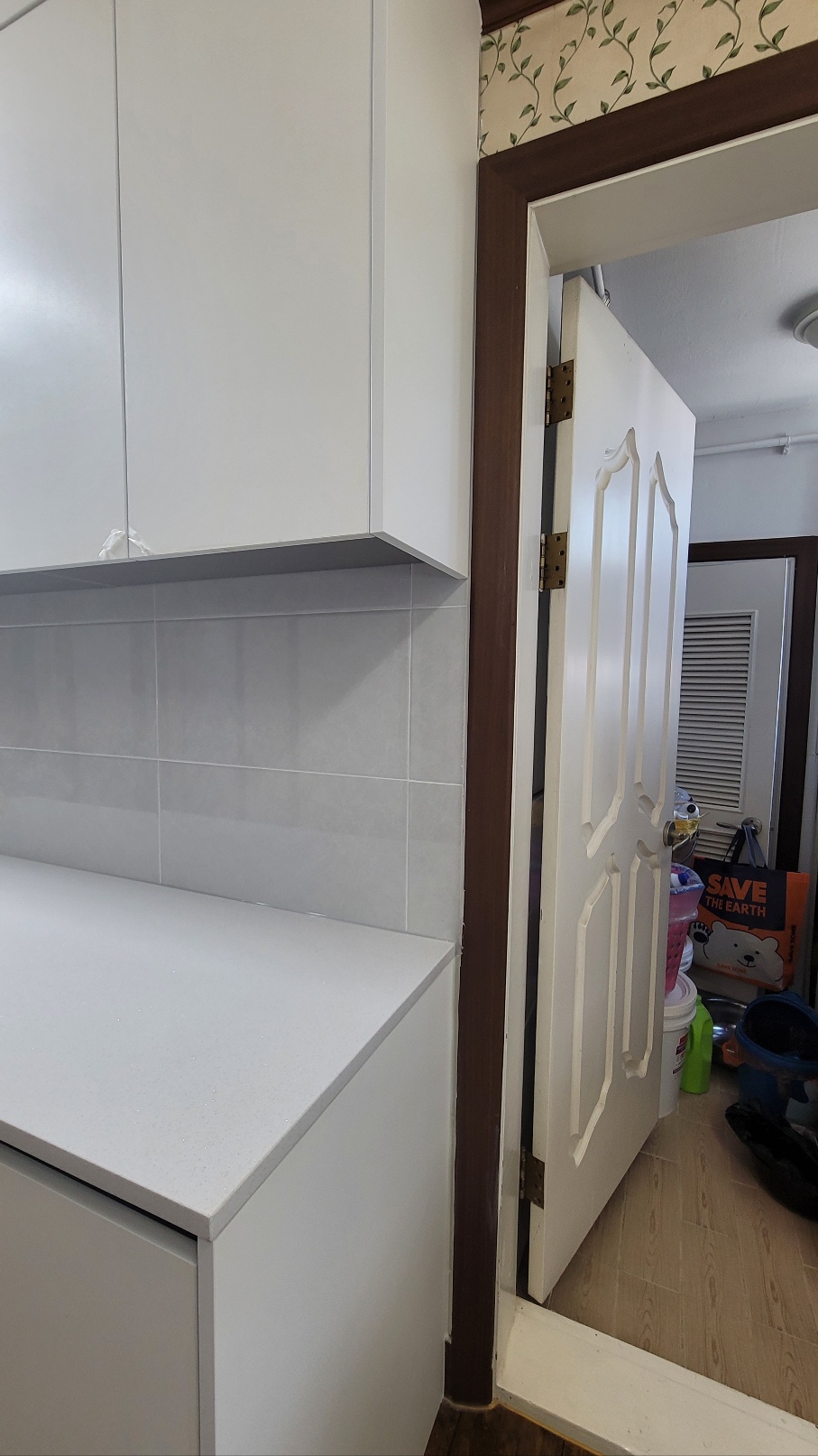가구 시공 끝나고나서 저 벽지 부분을 타일로 마저 붙이고 싶다