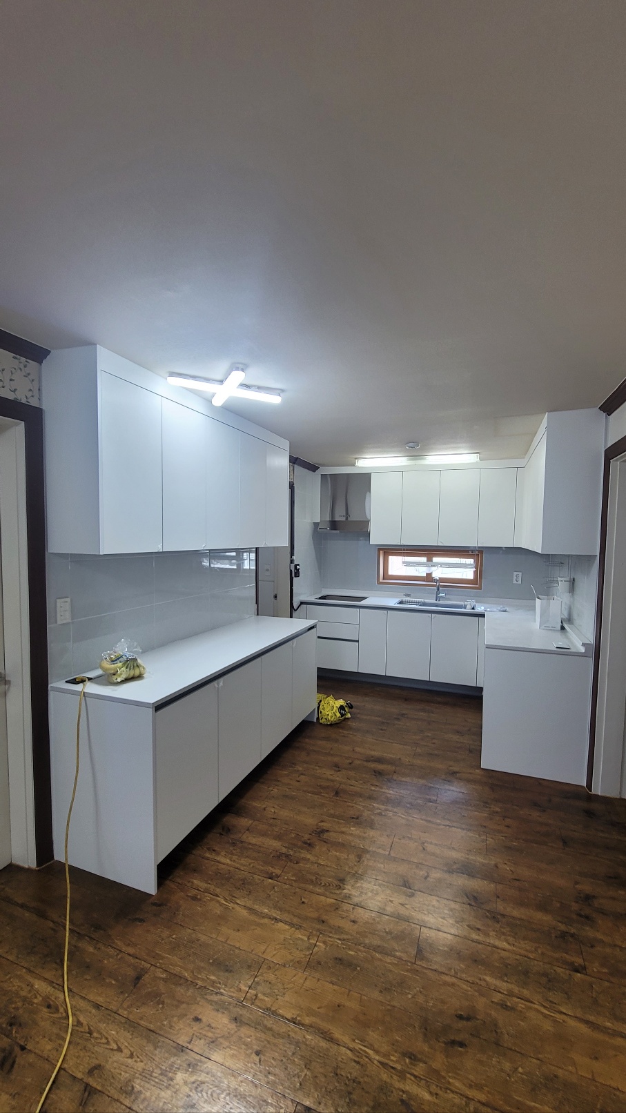 원래는 저 X자 전등이 부엌이 아니라 식탁 자리라서